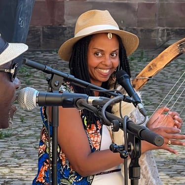 La musique est selon moi la plus belle des hautes magies. Elle réenchante le monde, élève l’esprit, ouvre des portes de la joie, du coeur et de la connaissance. En chantant et en pinçant les cordes de ma harpe Ngombi, je me relie à l’univers du visible à l’invisible. En solo ou avec d’autres musicien aux percussions et à la guitare notamment, j’aime transmettre des énergies bienfaisantes et guérisseuses qui font vibrer les âmes, convier à un voyage singulier pour chacun. Partager, rêver, vibrer, danser, communier, fraterniser … voici quelques-unes des raisons qui m’amènent à la scène, notamment au sein du Neferti Chandra Orchestra que j'ai fondé. Mes partenaires en musique: Emilio Bissaya, Shyamal, Oram, Fabrice Barreau, Mestre Juruna
